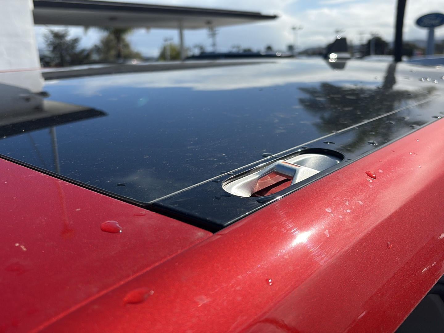 - The vehicle is equipped with a camera that displays an image of the area behind the vehicle on an interior display.