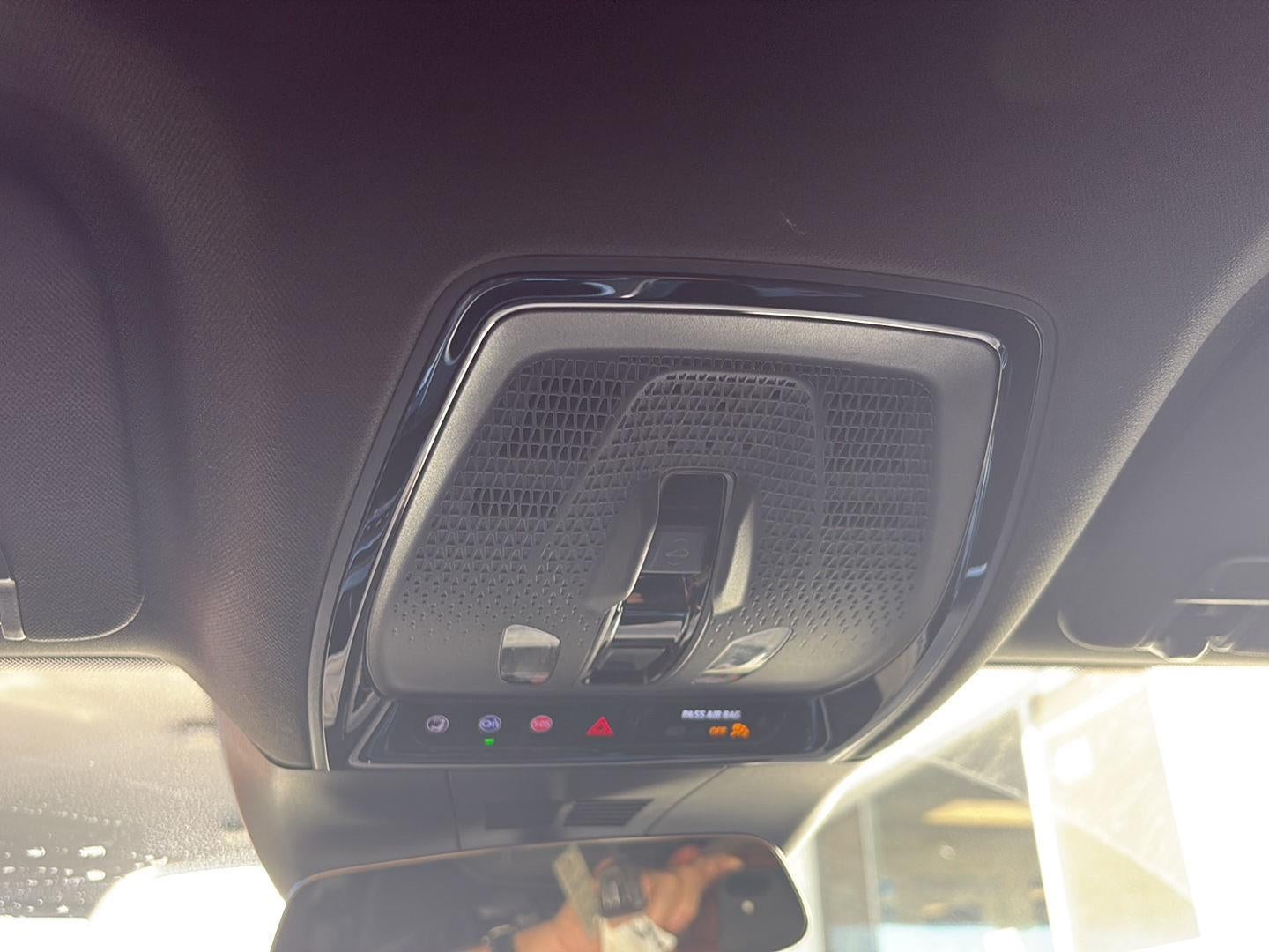 - Surround technology includes speakers located in the front row seat head restraints